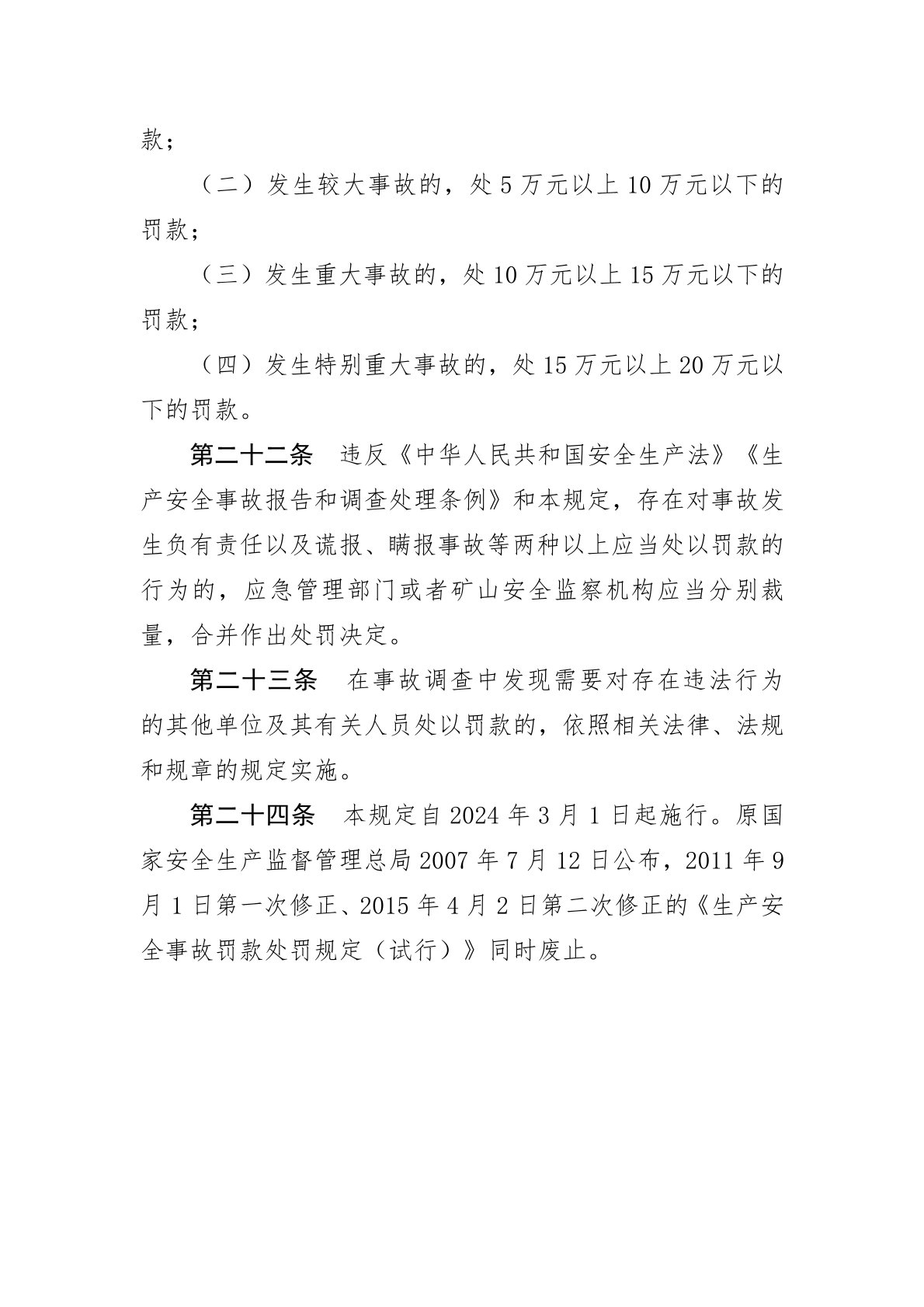 生產(chǎn)安全事故罰款處罰規(guī)定